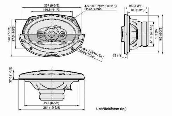 • Woofer size: 6" x 9" / 16,3 x 23,7  cm