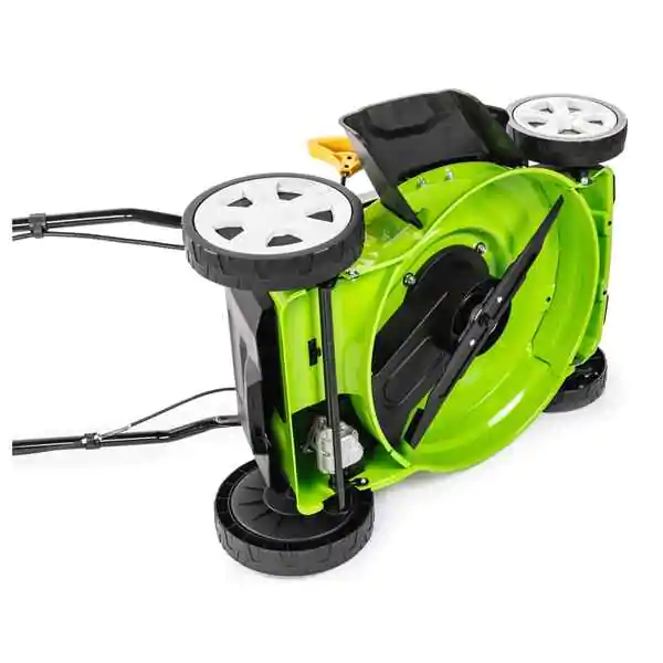 • Metalno kućište garantuje dugotrajnost i otpornost, dok 4u1 sistem košenja omogućava sakupljanje trave, malčiranje, zadnje i bočno izbacivanje. Centralno podešavanje visine košenja u 6 nivoa (25–75 mm) omogućava precizno prilagođavanje različitim tipovima travnjaka i uslovima rada.