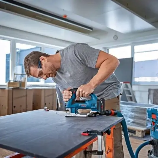 • Bosch GST 18V-155 BC Professional predstavlja vrhunsku akumulatorsku ubodnu testeru sa lučnom drškom namenjenu preciznom i udobnom radu u različitim materijalima. Opremljena je snažnim motorom bez četkica koji obezbeđuje visoku efikasnost, dug vek trajanja i smanjeno održavanje. Zahvaljujući dobro izbalansiranom dizajnu i ergonomskom obliku drške sa okidačem za podešavanje brzine, alat nudi izuzetnu kontrolu tokom rezanja. Sistem vođenja lista testere sprečava njegovo savijanje čak i pri izvođenju oštrih krivina, čime se postiže maksimalna preciznost i čisti rezovi. Testera je kompatibilna sa usisivačem za prašinu, što omogućava čistije radno okruženje i veću bezbednost korisnika. Dodatne funkcije, poput velike poluge za izbacivanje lista i Drop Control sistema, povećavaju zaštitu i jednostavnost rukovanja. Namenjena je za krivolinijske i poprečne rezove u punom drvetu, iverici, kompozitima i tvrđim materijalima. Robusna aluminijumska osnovna ploča sa dve tačke pričvršćivanja obezbeđuje stabilnost i sigurnost pri radu. Kompatibilna je sa Bosch Professional 18V akumulatorima i AMPShare sistemom, dok modul za povezivanje omogućava prilagođavanje podešavanja i uvid u informacije o radu alata.