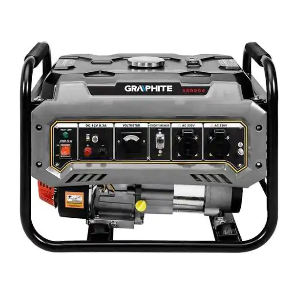 • Benzinski agregat GRAPHITE 58G904 snage 2200W predstavlja pouzdano rešenje za napajanje električnih alata i uređaja na mestima bez priključka na mrežu. Ovaj prenosivi generator, pokretan četvorotaktnim motorom od 6,5 KS, idealan je za korišćenje na gradilištima, u radionicama, vikendicama i poljoprivrednim gazdinstvima.