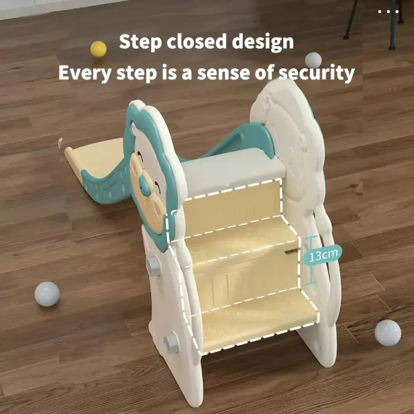 • Dečiji tobogan „Lav“ predstavlja savršeno rešenje za aktivnu i sigurnu igru mališana, kombinujući zabavu, stabilnost i sigurnost, i idealan je dodatak svakoj dečijoj sobi ili dvorištu; izrađen od visokokvalitetnog, netoksičnog HDPE materijala koji se koristi u prehrambenoj industriji, garantuje dug vek trajanja i maksimalnu zaštitu, sa glatkom površinom i zaobljenim ivicama koje sprečavaju povrede, dok motiv nasmejanog lava unosi vedrinu i podstiče decu na igru; tobogan ima ukupnu dužinu od 154 cm, dužinu klizne površine od 142 cm, visinu od 77 cm i širinu osnove 37 cm, dok maksimalna nosivost iznosi 35 kg, a široke i stabilne stepenice sa neklizajućom površinom omogućavaju siguran uspon, dok blag nagib i produženi završetak tobogana omogućavaju meko i sigurno klizanje; zahvaljujući kompaktnom dizajnu, veselim bojama i jednostavnom sklapanju i održavanju, „Lav“ se lako uklapa u svaki prostor i postaje omiljeni kutak za igru, smeh i pokret, pružajući deci samopouzdanje i sate nezaboravne zabave u bezbednom i podsticajnom okruženju.