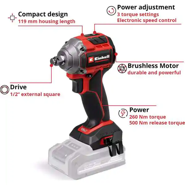 • Einhell Professional TP-CW 18/260-C Li BL je snažan i izuzetno kompaktan akumulatorski udarni odvijač, namenjen zahtevnim montažnim i servisnim radovima, kao i brzom i bezbednom odvrtanju i zatezanju točkova na vozilima. Pripada Power X-Change sistemu, što omogućava korišćenje jedne 18 V baterije sa svim kompatibilnim Einhell uređajima iz iste platforme.
