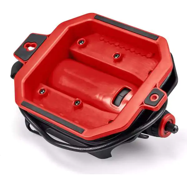 • Uređaj se isporučuje sa postoljem koje ima integrisane držače za najčešće korišćene nastavke, prostor za odlaganje fleksibilnog vratila i mogućnost kačenja na zid. Gumirane nožice obezbeđuju stabilno pozicioniranje na radnoj površini, dok integrisani nosač kabla omogućava uredno skladištenje.