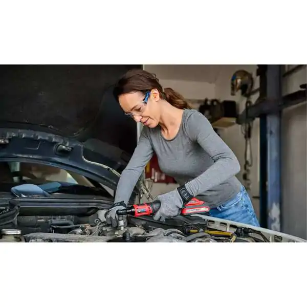 • Ovaj akumulatorski ugaoni zavrtač koristi 3/8" prihvat za nasadne ključeve, što ga čini tipičnom ugaonom račnom na baterije, prilagođenom savremenom načinu rada. Maksimalni obrtni moment od 60 Nm omogućava lako odvrtanje i sigurno zatezanje vijaka, čak i kod čvršćih spojeva.