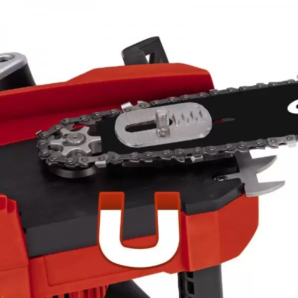 • Ova električna testera obezbeñuje izvanredne performanse i savršenu sigurnost pri radu. Sa ergonomskom drškom i optimizovanim centrom ravnoteže pruža priliku za rad bez umaranja. Lanac se lako zateže i menja bez korišćenja alata.