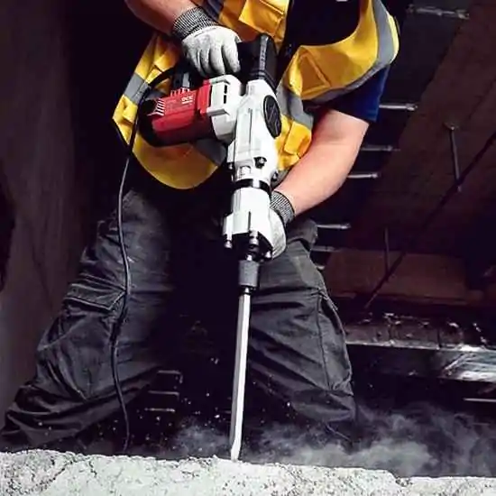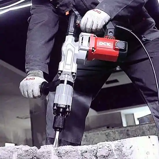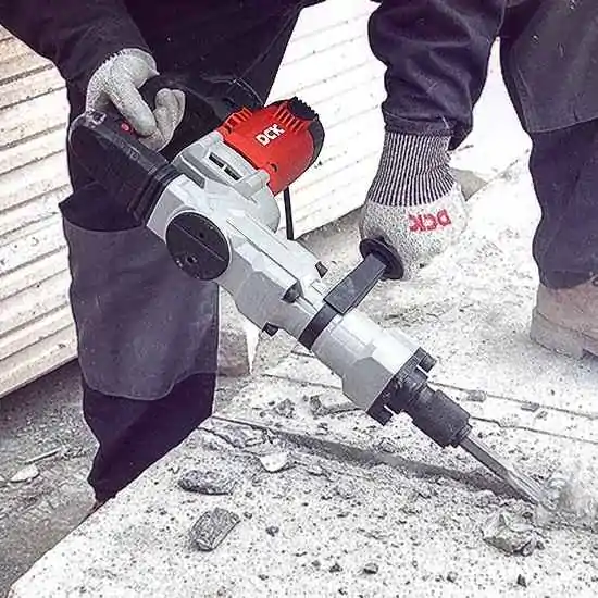 • DCK KZG07-6SM elektro-pneumatski čekić SDS-MAX 1500W je profesionalni alat namenjen za zahtevne građevinske radove kao što su razbijanje betona, uklanjanje pločica i obrada tvrdih materijala. Zahvaljujući snažnom motoru od 1500W i energiji udarca od 22J, ovaj čekić za rušenje betona pruža odlične performanse i pouzdan rad na gradilištu.