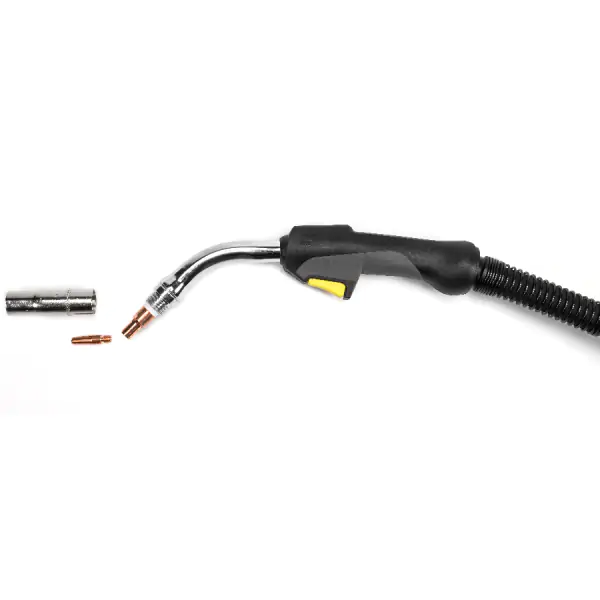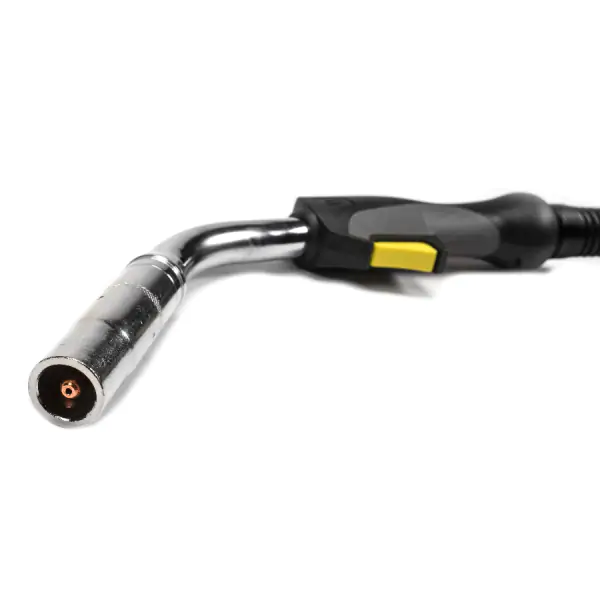 • ESAB Gorionik PSF 520W je vrhunski vodeno hlađeni MIG/MAG gorionik, konstruisan za najzahtevnije industrijske aplikacije gde su kontinuitet rada i ekstremna izdržljivost od presudnog značaja. Sa impresivnom nazivnom strujom zavarivanja od 500 A pri punom 100% radnom ciklusu kada se koristi sa CO₂ ili mešanim gasom (Ar/CO₂), ovaj gorionik pruža neuporediv kapacitet za zavarivanje debelih limova i zahteva velikog toplotnog unosa bez rizika od pregrevanja. Njegov sistem vodenog hlađenja efikasno upravlja visokim temperaturnim opterećenjima, omogućavajući neprekidne radne cikluse u teškim proizvodnim uslovima. Podržava širok opseg prečnika žice od 0,8 do 1,6 mm, što ga čini svestranim za rad sa čelikom, nerđajućim čelikom i aluminijumom. Dužina kabla od 5 metara obezbeđuje zavarivaču odgovarajuću slobodu kretanja i fleksibilnost za rad na velikim konstrukcijama. Ergonomski dizajn sa robusnom drškom, zglobnim spojem i opružnim osloncem značajno poboljšava kontrolu i stabilnost tokom zavarivanja, smanjujući fizički napor i zamor tokom dugih smena. Zahvaljujući standardnom Euro konektoru, gorionik se lako i pouzdano povezuje sa različitim ESAB aparatima za zavarivanje, povećavajući njegovu funkcionalnost i čineći ga kliučnom komponentom u svakom profesionalnom postrojenju koje zahteva nekompromisnu snagu, pouzdanost i produktivnost.