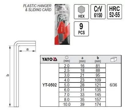 • Garnitura inbus ključeva 2-10mm/9 YATO