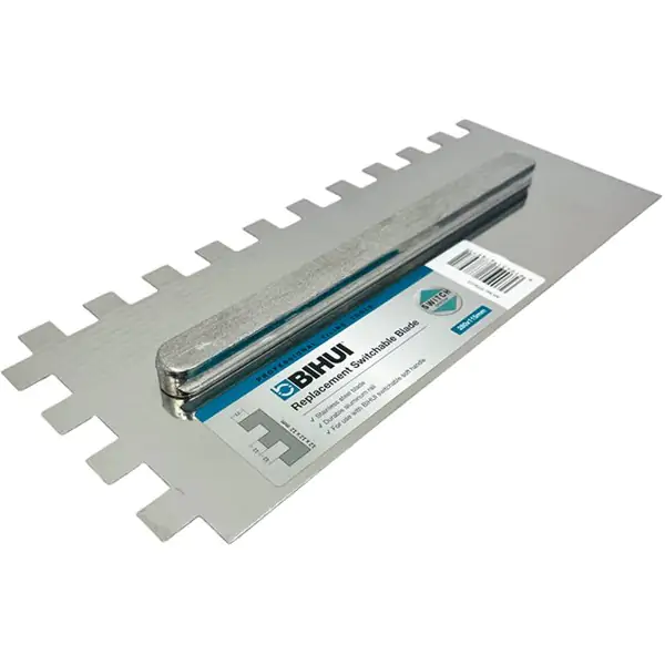 • Rezervno sečivo BIHUI PTSJ12 je profesionalni zamenjivi element za nazubljene gleterice BIHUI PTSJG8, namenjeno preciznom i ravnomernom nanošenju lepkova, masa i samorazlivnih podloga. Izrađeno od visokokvalitetnog nerđajućeg čelika debljine 0,7 mm, ovo sečivo kombinuje savršenu elastičnost sa izuzetnom čvrstoćom i potpunom otpornošću na koroziju. Krupni kvadratni zubi dimenzija 12×12 mm omogućavaju nanošenje debljih slojeva materijala, idealnih za postavljanje velikofomatnih pločica, kamenih obloga i podnih površina. Široki aluminijumski učvršćivač garantuje čvrstu i stabilnu vezu sa drškom, bez neželjenog pomeranja tokom rada. Dimenzija 280×115 mm pruža odličan balans između brzine pokrivanja i precizne kontrole. BIHUI PTSJ12 je nepogrešiv izbor za profesionalne keramičare i podopolagače.