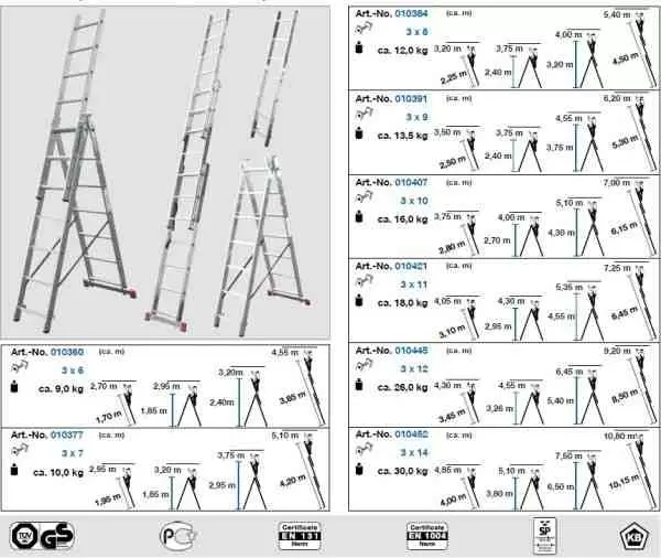 • Aluminijumske merdevine se sastoje od 3 dela sa po 11 gazišta