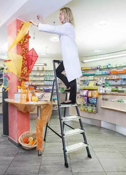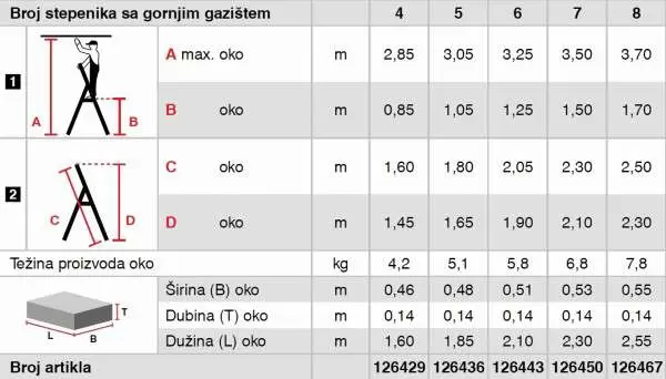 • Aluminijumske stepenaste merdevine sa širokim, neklizajućim komfornim gazištima i sigurnosnim rukohvatom