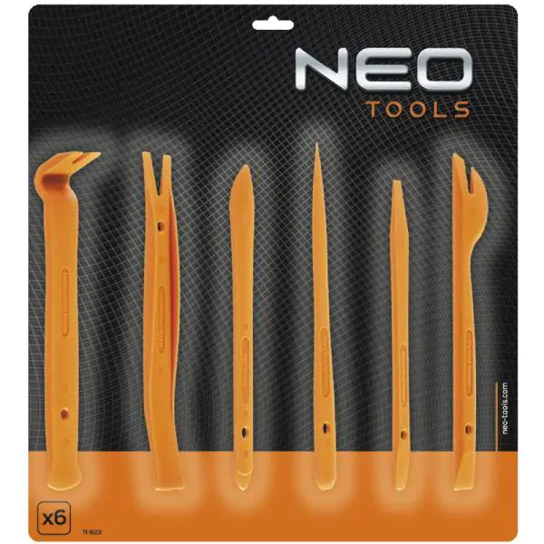 • Uvereni u preciznost i bezbednost pri radu, NEO TOOLS set za uklanjanje tapacirunga model 11-823 predstavlja profesionalno rešenje za demontažu auto presvlaka i enterijera bez rizika od oštećenja. Svaki od šest izvlakača u setu izrađen je od visokokvalitetnog tvrdog najlona, koji je dovoljno čvrst da efikasno otkopčava kopče i držače, a istovremeno dovoljno nežan da ne ostavlja tragove na mekanim površinama, plastici ili koži. Namenjen je za sve radionice auto elektronike, servise audio-opreme, kao i za profesionalnu ugradnju i demontažu enterijera vozila. Lagan i ergonomski dizajniran, omogućava dugotrajan rad bez zamora. Sa težinom od svega 0,321 kg, ovaj set je kompaktan, organizovan i u potpunosti ispunjava očekivanja profesionalaca koji cene kvalitet i pouzdanost NEO brenda.