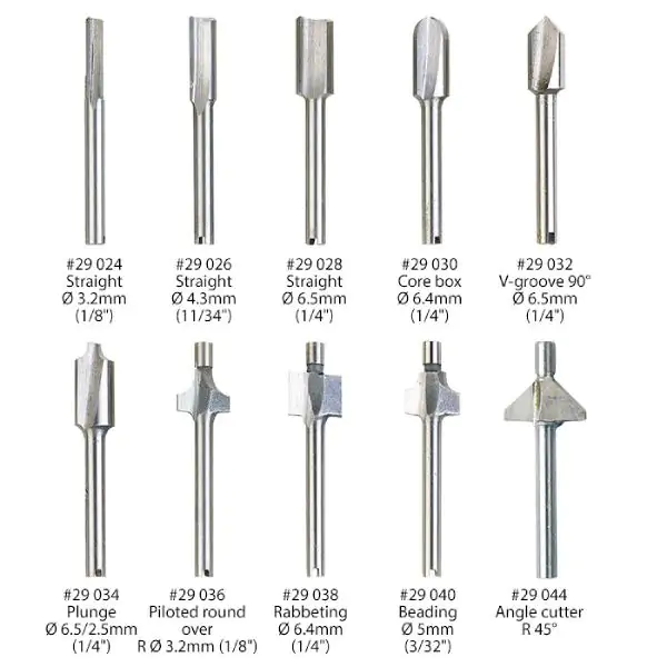 • Komplet obuhvata 10 različitih oblika glodala koji pokrivaju sve osnovne vrste obrada — od pravolinijskog i ugaonog glodanja, do zaobljavanja ivica i izrade utora. Sva glodala su uredno smeštena u elegantnu drvenu kutiju za bezbedno odlaganje i dug vek trajanja.