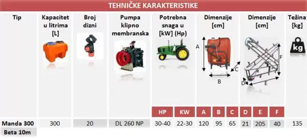 • Ratarska prskalica Manda 300L 10 metara, 2 sekcije, 20 dizne Dal Degano