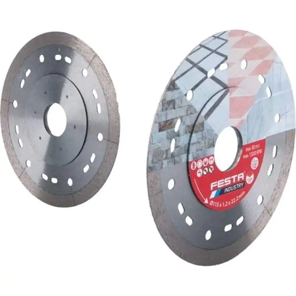 • Profesionalna dijamantska rezna ploča FESTA 115 x 1.2 mm namenjena je za precizno sečenje tvrdih i gustih materijala uz minimalno krzanje ivica. Kontinualni obod sa visokim sadržajem dijamantskih zrna obezbeđuje tanak, čist i gladak rez bez neravnina, što je posebno važno pri obradi keramičkih pločica, porcelana i stakla.