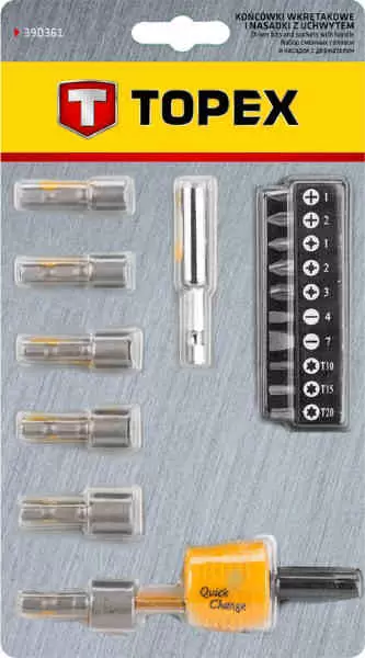 • Čak osamnaest raznovrsnih kapastih nastavaka koji se postavljaju na univerzalni odvijač mogu biti Vaši po izvanrednoj ceni. Osamnaest biceva spakovanih u jedan set koji može biti praktičan i u radionici i tokom prenosa proizvod su kompanije Topex koja se postavila kao jedna od vodećih kada je u pitanju proizvodnja alata za amatere i poluprofesionalne majstore. Poručite svoj set na vreme.
