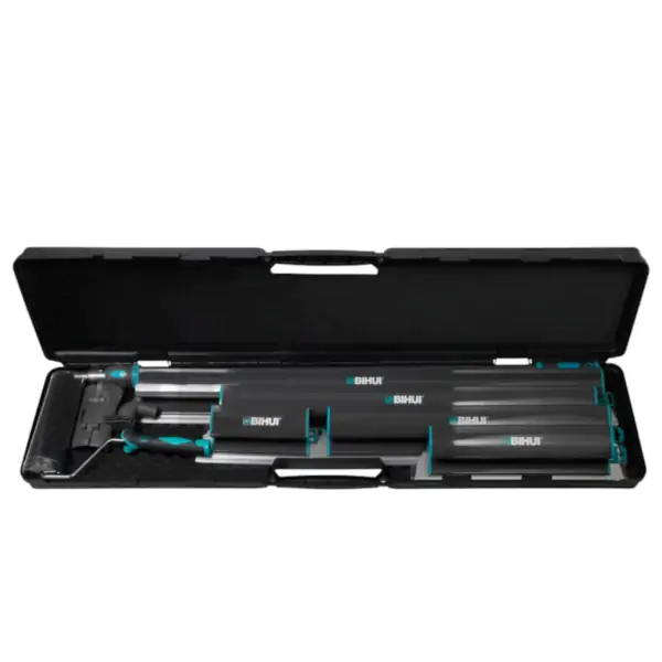 • Set BIHUI za gipsane radove predstavlja sveobuhvatno i ergonomski dizajnirano rešenje za brzu, preciznu i kvalitetnu obradu gipsa. Teleskopska drška dužine 110 cm, sa udobnom PVC omčom, omogućava rad sa različitim visinama i uglom, dok se pet fleksibilnih noževa od nerđajućeg čelika (dužine 25, 40, 60, 80 i 100 cm) sa tankim sečivima od 0,3 mm lako prilagođavaju površini, obezbeđujući glatku završnu obradu bez potrebe za naknadnim brušenjem. Set uključuje i najlonski valjak od 22 cm za farbanje, kao i konektor koji omogućava montažu valjka ili noževa na istu dršku, čineći ga izuzetno svestranim i praktičnim. Svi delovi su organizovani u robustnoj transportnoj kutiji, čime se olakšava skladištenje i zaštita alata. Sa težinom od 8,8 kg, ovaj komplet nudi optimalan odnos između kompletnosti, portabilnosti i profesionalne izrade, idealan za majstore, renovatore i sve koji traže pouzdan alat za savršene rezultate u gipsanim radovima.