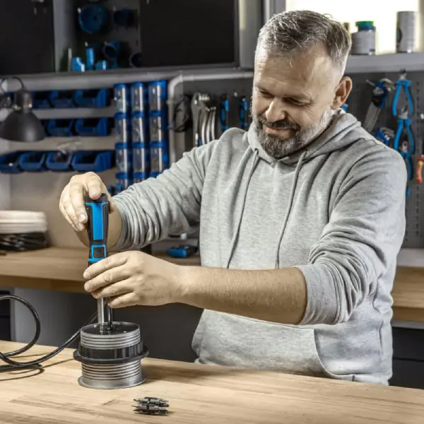 • Ovaj set od 13 odvijača predstavlja praktično i inovativno rešenje za sve vrste montažnih i servisnih radova. Zahvaljujući integrisanom zupčanik sistemu, omogućava izbor prenosa snage 1:5 ili 1:1, čime se olakšava odvrtanje i zavrtanje i smanjuje napor korisnika. Sistem sa ratchet mehanizmom omogućava brži i efikasniji rad, dok prekidač za promenu smera okretanja pojednostavljuje operacije. Unutrašnji magnetni držač bitova olakšava brzo menjanje bitova, a sami bitovi su izrađeni od visokokvalitetnog S2 legiranog čelika, otpornog na deformacije i oštećenja. Set sadrži 12 različitih bitova dužine 25 mm sa 1/4” hex profilom, koji se praktično čuvaju u dršci alata. Dvokomponentna drška sa posebno oblikovanom površinom protiv klizanja omogućava bolji pritisak pri zavrtanju. U setu su ravni odvijači (3 mm, 4 mm, 5 mm, 6 mm), krstasti PH0, PH1, PH2, PH3 i Torx T10, T15, T20, T25, pružajući sve što je potrebno za profesionalni i kućni rad.