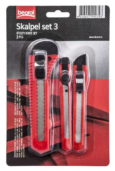 • Set se sastoji od dva skalpela od 9mm i jednog od 18mm.