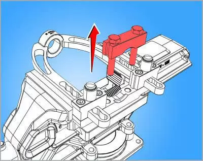 • Prvo se skine podešavajući držač sa vrha alata, tada se postavi zglob kroz prsten; postavljanjem podešavajućeg držača na vrhu alata zglob se pričvrsti za skidač.