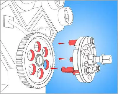 • Alat je dizajniran za demontažu pogonskih remenica sa žlebovima na čeonoj strani. Alat demontira remenicu bez ikakvog rizika od oštećenja. Alat je podesiv za različite prečnike remenica, jer su kraci podešavajući.