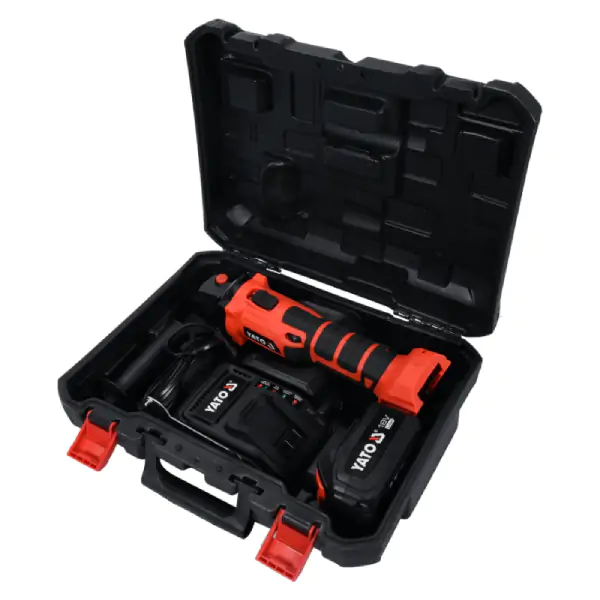 • Profesionalna bežična ugaona brusilica YATO YT-82829, deo 18V akumulatorskog sistema, predstavlja vrhunsko rešenje za izuzetno zahtevne radove sečenja i brušenja metala, betona i drugih materijala, gde su snaga i kontrola od ključnog značaja. Pokreće je efikasan motor bez četkica koji kombinuje visok obrtni moment sa širokim opsegom elektronski regulisane brzine od 2000 do 9000 obr/min, omogućavajući optimalnu adaptaciju na bilo koji zadatak i materijal. Ova fleksibilnost, zajedno sa prečnikom diska od 125 mm (navoj M14), čini je pogodnom za brzo sečenje i precizno završno obradu. Ključna bezbednosna karakteristika je sigurnosna spojnica koja trenutno isključuje disk pri zaglavljivanju, štiteći korisnika od opasnog povratnog trzaja. Lagani start štedi motor i menjač, dok ventilacioni otvori zaštićeni mrežicom sprečavaju ulazak prašine. Ergonomija je unapređena vitkim kućištem i udobnom bočnom drškom. U kompletu se isporučuje sa Li-Ion baterijom 18V/3Ah koja se puni za 1,5 sati, brzim punjačem i koferom. Kao deo YATO 18V platforme, brusilica deli kompatibilnost baterija sa celom serijom alata (2-6Ah), nudeći korisnicima fleksibilnost, uštedu i mogućnost gradnje personalizovanog seta. Ova brusilica je nezamenljiv alat za profesionalce u metalopreradi, građevinarstvu i servisima.