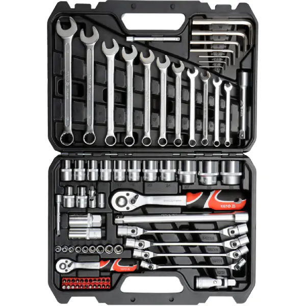 • Profesionalna garnitura alata YATO od 77 delova predstavlja kompaktno, ali sveobuhvatno rešenje koje kombinuje vrhunski kvalitet sa praktičnom organizacijom za širok spektar zadataka u servisima, radionicama i zahtevnim domaćinstvima. Set, organizovan u pogodan plastični kofer, integriše tri ključna pogona (1/4", 3/8" i 1/2"), čime pokriva većinu potreba od preciznih popravki do zahtevnijih mehaničkih intervencija. Kvalitet je osiguran upotrebom visokokvalitetnih legura: nasadni ključevi i pogoni izrađeni su od hrom-vanadijumskog (CrV) i hrom-molibden (CrMo) čelika, poznatih po izuzetnoj čvrstoći i otpornosti na habanje, dok su kritični nastavci konstruisani za pouzdan rad. Inovativni AS-DRIVE sistem na ključevima povećava prenos obrtnog momenta i štiti ivice matice, a račne sa 72 zuba omogućavaju precizan rad sa minimalnim hodom u ograničenim radnim prostorima. Set je pažljivo osmišljen i uključuje najneophodnije elemente: osnovne i dugometričke nasadne ključeve, račne, adaptere, odvijače i kombinovane ključeve. YATO garnitura od 77 delova je idealan izbor za one kojima je potrebna ravnoteža između opsežnosti, vrhunskog kvaliteta i praktične prenosivosti za efikasno rešavanje svakodnevnih izazova.