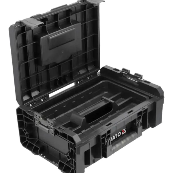 • Uvereni u optimalnu organizaciju i modularnu fleksibilnost, YATO srednja visenamenska kutija predstavlja kliucni dodatak S1 i S12 sistema kutija za alat. Ova prakticna kutija kombiniuje superiornu funkcionalnost sa izdrzljivoscu, obezbedjujuci dodatan prostor od 12 litara i nosivost od 20 kg za sigurno skladistenje alata i pribora. Njena jedinstvena karakteristika je integrisana posuda ispod poklopca, koja sluzi kao organizator za sitan alat ili kao stabilan nosac za posudu sa delovima. Poklopac sa fleksibilnim zaptivacem garantuje zastitu od prasine i vlage, a standardizovani konektori omogucavaju jednostavno povezivanje sa svim kutijama iz S1 i S12 sistema, cime se stvara potpuno prilagodjivi organizacioni sklop. Sa dve sklopive drske za lak transport i kompaktnim dimenzijama (450 x 332 x 170 mm), ova kutija je idealan izbor za profesionalce kojima je potrebna urednost, pristupacnost i mogucnost proširenja radnog sistema.