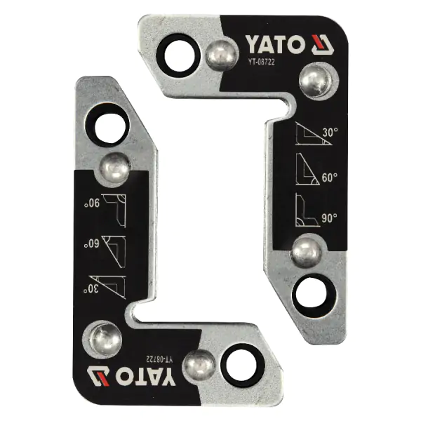• YATO set od 2 magnetna ugla YT-08722 predstavlja praktično i moćno rešenje za olakšanje i ubrzanje zavarivačkih i montažnih radova, omogućavajući precizno i stabilno fiksiranje komponenti pod tri najčešća ugla. Izrađeni od robusnog čelika, ovi magnetni uglovi poseduju moćne neodimijske magnete sa silom držanja od 25 kg po magnetu, što obezbeđuje pouzdano i sigurno pozicioniranje limova, profila, cevi i drugih elemenata tokom operacija zavarivanja ili montaže. Njihova glavna funkcionalnost ogleda se u mogućnosti podešavanja pod tri ugla — 30°, 60° i 90° — što pokriva većinu standardnih scenarija u izradi ramova, kutija i drugih konstrukcija. Ova prilagodljivost, kombinovana sa kompaktnim dizajnom, omogućava slobodan pristup spoju sa svih strana, olakšavajući tačno poravnavanje i nesmetano izvođenje zavara ili mehaničkog pričvršćivanja. Kao praktična pribadača u radionicama za obradu metala, stolariji i građevinarstvu, ovaj set direktno doprinosi povećanju tačnosti, efikasnosti i kvaliteta finalnog spoja, eliminišući naporno i neprecizno držanje komponenti rukama.