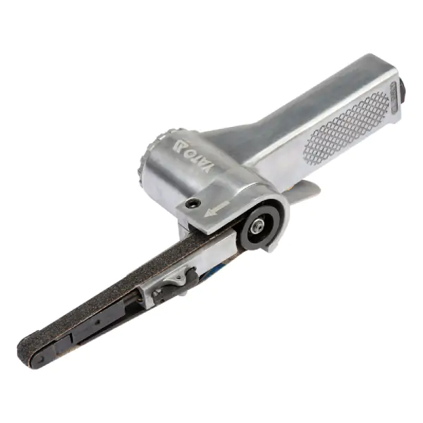 • YATO pneumatska trakasta brusilica YT-09741 je profesionalni, lagani i izuzetno moćan alat za preciznu obradu, oblikovanje i završno brušenje metala, drveta i plastike na najskrivenijim mestima. Zahvaljujući snažnom pneumatskom motoru koji postiže do 20.000 obrtaja u minuti, alat brzo i kontrolisano uklanja materijal, nudeći glatku završnu obradu. Lagana aluminijumska konstrukcija (svega 0,78 kg) omogućava dugotrajan rad bez zamora i jednostavno rukovanje, dok podesiva glava omogućava prilagođavanje ugla rada za pristup ugaonim spojevima, zavarima ili kompleksnim konturama. Ova brusilica je neophodna za autolimare za obradu zavara i spajanja limova, za bravare u finom oblikovanju metala, ili za stolare pri doradi nameštaja. Set uključuje tri brusne trake različite granulacije za sve faze obrade, kao i priključak za crevo za mogućnost povezivanja sa usisivačem i odvod prašine. Svojom kombinacijom visokih performansi, upravljivosti i preciznosti, ovaj alat je vredan dodatak arsenalu svakog zahtevnog profesionalca.